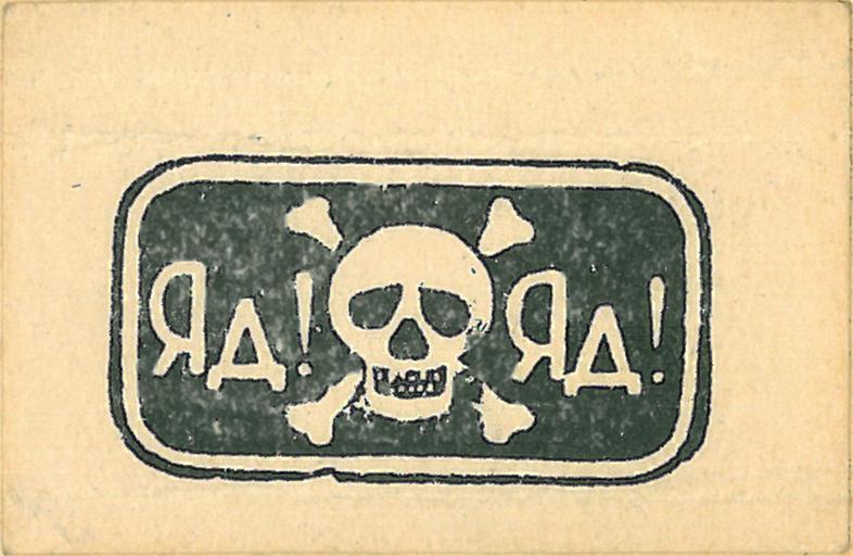 | Keywords: ЭтикеткаЯд.jpg en Label for medicines Poison with Totenkopf for the Soviet drugstores of 1930th years ru Этикетка для лека ств Яд для советских аптек 1930-х годов Ха ьковский институт эндок инологии Personal collection Scanned by Vizu processed by A Sdobnikov 1930s\2009-03-05 original upload date PD-old Poison warning signs Medicine in the Soviet Union Kharkiv products |