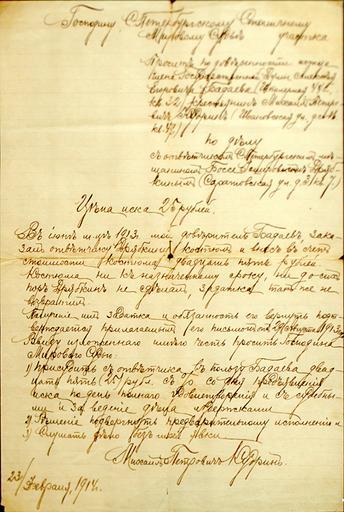 | Keywords: Прошение к мировому судье о взыскании с портного Б. И. Дрябкина 25 рублей.jpg П ошение к ми овому судье о взыскании с по тного Б И Д ябкина 25 ублей за невыполненный пошив костюма для депутата Госуда ственной Думы А Е Бадаева Госуда ственный музей политической исто ии России 1914г Author PD-old Manuscripts |