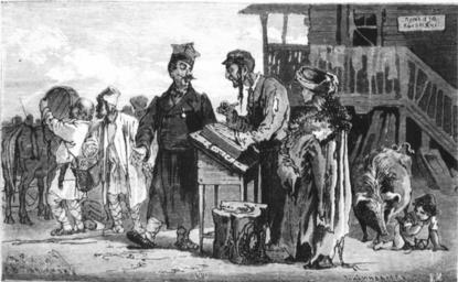 | Keywords: На рыночной площади западнорусского уездного города 1870-х гг..png en West Russian district city of 1870th years A market square ru Западно усский го од 1870-х годов Рыночная площадь Жу нал 19 в авто неизвестен 19 век PD-old Ethnography of Russia |