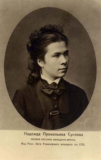| Keywords: НадСуслова.jpg ru Суслова адежда П окопьевна http //www rulex ru/rpg/portraits/29/29614 htm Отк ытки из коллекции В Лапина 19 век PD-old Polina Suslova 19th-century photographs Black and white photographic portraits of women Oval portraits of women Women facing right Physicians from Russia |