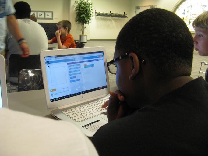 Keywords: kalamazoo kalamazoo public library kalamazoopubliclibrary code indoor KPL Code Camp: Teens work together to solve problems while learning basic computer programming skills, www.kpl.gov KPL Code Camp: Teens work together to solve problems while learning basic computer programming skills, www.kpl.gov