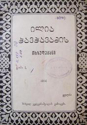 Keywords: ილია ჭავჭავაძის „თხზულებანის“ სატიტულო ფურცელი.jpg ka ილია ჭავჭავაძის თხზულება ის სატიტულ ფურცელი http //art dlf ge/files/u51/ilia_kda jpg art dlf ge Ilia Chavchavadze 1914 Source http //art dlf ge/node/116 art dlf ge PD-Art Ilia Chavchavadze Mkhedruli book covers 1914 books |