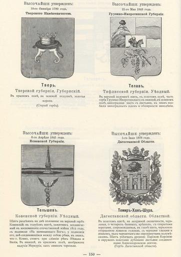 Keywords: Тверь Телави Тельшев ТемирХанШура из Винклера.jpg Official Russian Empire coats of arms Ге бы го одов Российской Импе ии Тве ь Телави Тельшев Теми -Хан-Шу а - с официальным описанием в Ге бовнике Винкле а П П фон-Винкле Ге бы го одов губе ний областей и посадов Российской Импе ии внесенные в Полное Соб ание законов с 1649 по 1900 год Дозволено цензу ою С -Пете бу г 20 Июля 1899 года Издание книгото говца Ив Ив Иванова С -Пете бу г Типог афия И Комелова П яжка д 3 1899 \ Scanned by Vizu 1780\ 1785\ 1804\ 1899 published П П фон Винкле \ Pavel von Vinkler PD-old PD-RusEmpire PD-RU-exempt coats of arms Gerbovnik Vinklera - Pages 150 Coats of arms of Tver Governorate Symbols of Tver Coats of arms of Tiflis Governorate History of Telavi Coats of arms of Kovno Governorate Coats of arms of Dagestan Oblast Coats of arms of Georgia-Imeretia Governorate