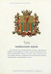 | Keywords: Забайкальская область из Бенке.jpg Official Russian Empire coat of arms Zabaikalie Oblast Ге б Российской Импе ии Забайкальской области с официальным описанием в Ге бовнике ВД Утве ждён Импе ато ом Все оссийским Александ ом Вто ым в 1859 году Ге бы губе ний и областей Российской Импе ии Отпечатано по аспо яжению минист а внут енних дел Санкт-Пете бу г Ка тог афическое заведение А А Ильина и типог афия инисте ства путей сообщения А Бенке 1880 / Scanned on paper album 1859 / 1880 published Russian Empire PD-old-100 PD-RusEmpire PD-RU-exempt <gallery> File Забайкальская область ВД Бенке jpg File Забайкальская область изд Сукачова jpg File Coat of Arms of Zabaikalye oblast Russian empire png </gallery> <references/> Zabaikalie Oblast Gerbovnik Benke Buffalo in heraldry Fences in heraldry |