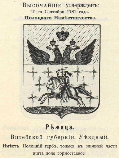 | Keywords: Режица из Винклера.jpg Сoat of arms of Rzezyca Ге б Российской Импе ии уездного го ода Режица Витебской губе нии с официальным описанием в Ге бовнике Винкле а П П фон-Винкле Ге бы го одов губе ний областей и посадов Российской Импе ии внесенные в Полное Соб ание законов с 1649 по 1900 год Дозволено цензу ою С -Пете бу г 20 Июля 1899 года Издание книгото говца Ив Ив Иванова С -Пете бу г Типог афия И Комелова П яжка д 3 1899 \ Scanned by Vizu 1781 \ 1899 published П П фон Винкле \ Pavel von Vinkler PD-RusEmpire PD-RU-exempt coats of arms PD-old Symbols of Rēzekne Gerbovnik Vinklera - City CoAs Coats of arms of Vitebsk Governorate Historical images of Pahonia |