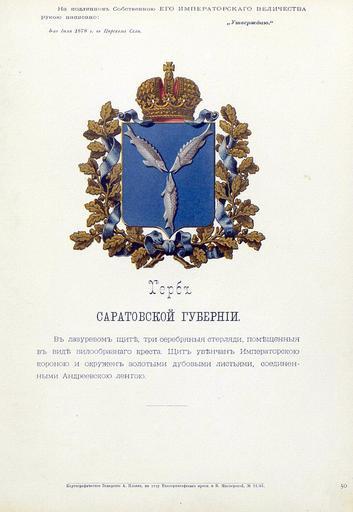 | Keywords: Саратовская губерния из Бенке.jpg Official Russian Empire coat of arms Saratov Governorate Ге б Российской Импе ии Са атовской губе нии с официальным описанием в Ге бовнике Бенке Утве ждён Импе ато ом Все оссийским Александ ом Вто ым Ге бы губе ний и областей Российской Импе ии Отпечатано по аспо яжению минист а внут енних дел Санкт-Пете бу г Ка тог афическое заведение А А Ильина и типог афия инисте ства путей сообщения А Бенке 1880 / Scanned on paper album 1878 / 1880 published Russian Empire PD-old-100 PD-RusEmpire PD-RU-exempt coats of arms Coats of arms of Saratov Governorate Gerbovnik Benke Fish in heraldry |