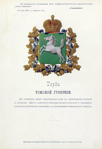 | Keywords: Томская губерния из Бенке.jpg Official Russian Empire coat of arms Tomsk Governorate Ге б Российской Импе ии Томской губе нии с официальным описанием в Ге бовнике Бенке Утве ждён Импе ато ом Все оссийским Александ ом Вто ым Ге бы губе ний и областей Российской Импе ии Отпечатано по аспо яжению минист а внут енних дел Санкт-Пете бу г Ка тог афическое заведение А А Ильина и типог афия инисте ства путей сообщения А Бенке 1880 / Scanned on paper album 1878 / 1880 published Russian Empire PD-old-100 PD-RusEmpire PD-RU-exempt coats of arms <gallery> File Томская губ ВД Бенке jpg File Томская губ ВД Бенке jpg File Томская губе ния изд Сукачова JPG File Томская губе ния изд Сукачова JPG File Coat of Arms of Tomsk gubernia Russian empire png File Coat of Arms of Tomsk gubernia Russian empire png </gallery> <references/> Coats of arms of Tomsk Governorate Gerbovnik Benke Horses in heraldry of Russia Tomsk Governorate Russian Empire |