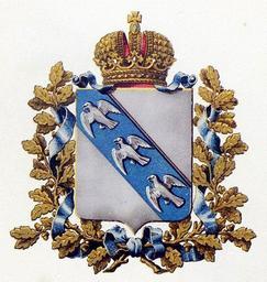 | Keywords: Курская губ МВД Бенке.jpg Official Russian Empire coat of arms Kursk Governorate Гласный ге б Российской Импе ии Ку ской губе нии в Ге бовнике Бенке Утве ждён Импе ато ом Все оссийским Александ ом Вто ым в 1878 году Ге бы губе ний и областей Российской Импе ии Отпечатано по аспо яжению минист а внут енних дел Санкт-Пете бу г Ка тог афическое заведение А А Ильина и типог афия инисте ства путей сообщения А Бенке 1880 / Scanned on paper album 1878 / 1880 published Russian Empire PD-old PD-RusEmpire PD-RU-exempt coats of arms <gallery> File Ку ская губе ния из Бенке jpg File Ку ская губе ния изд Сукачова JPG File Coat of Arms of Kursk gubernia Russian empire png </gallery> <references/> Coats of arms of Kursk Governorate Russian canting arms Gerbovnik Benke |