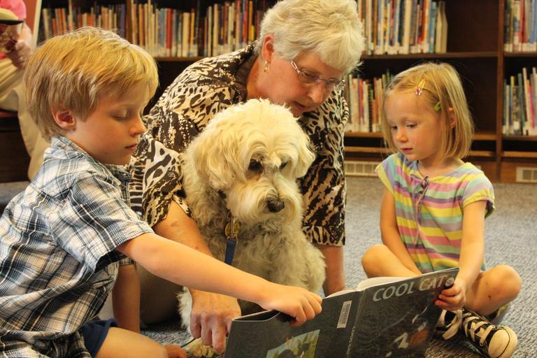 Keywords: Reading with Bailey at Kalamazoo Public Library. dogs public reading library international bailey kalamazoo therapy