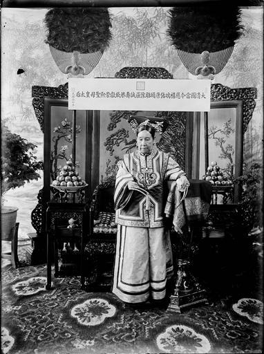 Keywords: 慈禧皇太后旧照(五).jpg zh-cn 慈禧皇太后旧照 Smithonian Institute Yu Xunling 1900 PD-art PD-old PD-China Yu Xunling Empress Dowager Cixi 19th-century portrait photographs of standing women at full length 1900