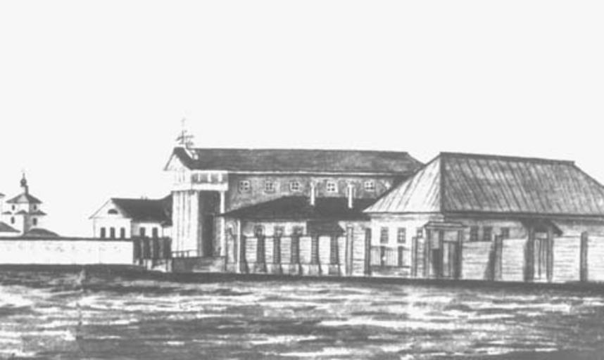 Keywords: Иркутск. Тихвинская площадь. Деревянный костёл.jpg И кутск Де евянный костёл на Тихвинской площади Аква ель П И Пежемского http //www ageirk baikal ru/ 1840-1850-е гг Авто неизвестен PD-old Historical images of Irkutsk