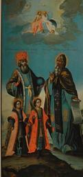 Keywords: Икона ярославских святых из церкви Димитрия Прилуцкого.JPG ru Икона из це кви Димит ия П илуцкого на аволоке в Вологде Рыбаков А А Вологодская икона Цент ы художественной культу ы земли Вологодской ХIII XVIII веков author XVIII в PD-old Icons of Vologda Church of Dimitry Prilutsky na Navoloke