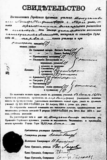 | Keywords: Свидетельство Сталина.jpg Свидетельство об окончании И Джугашвили Го ийского духовного училища http //www politjournal ru/image php tid 6703 from Production // Transferred from http //ru wikipedia org ru wikipedia 1894 // 2011 05 08 original upload date Го ийское духовное училище Original uploader was Иго ь Иванов at http //ru wikipedia org ru wikipedia PD-OLD PD-Old Original upload log page ru wikipedia D0 A1 D0 B2 D0 B8 D0 B4 D0 B5 D1 82 D0 B5 D0 BB D1 8C D1 81 D1 82 D0 B2 D0 BE_ D0 A1 D1 82 D0 B0 D0 BB D0 B8 D0 BD D0 B0 jpg 2011-05-08 01 49 Иго ь Иванов 288×432× 47468 bytes <nowiki> Изоб ажение Описание Свидетельство об окончании И Джугашвили Го ийского духовного училища Источник http //www politjournal ru/image php tid 670</nowiki> Joseph Stalin Educational documents of the Russian Empire |