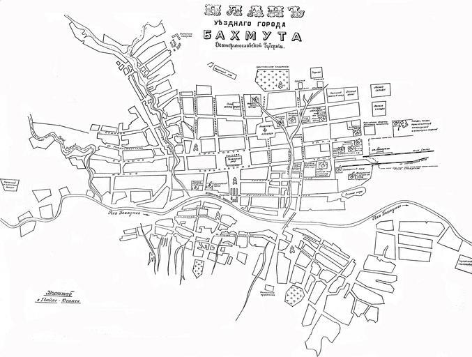 | Keywords: План уезднаго города Бахмута.jpg План го ода Бахмута http //radikal ru/F/s58 radikal ru/i162/1105/1b/64fec921fca9 jpg html скан плана XIX век unknown pd-old History of Artemivsk Donetsk Oblast Old maps of Yekaterinoslav Governorate Old maps of cities of the Russian Empire |