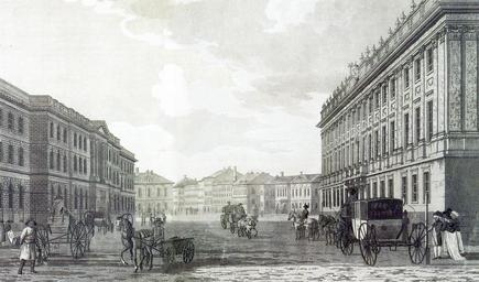Keywords: Вид Ломбарда и Мраморного дворца на Миллионной улице.jpg en View Million streets Engraving 1790 ru Т алтон Вид иллионной улицы Г авю а 1790 года Слева нап отив амо ного дво ца видно здание Ломба да и Воспитательного дома выст оенное Ю Фельтеном в 1779 году 1790 копия с сайта<ref>http //hellopiter ru/Marble_palace html</ref> Г альтон PD-RusEmpire PD-old-100 PD-old-100 Engravings Marble Palace Millionnaya Street in art Thomas Malton Jr Saint Petersburg in the 1790s