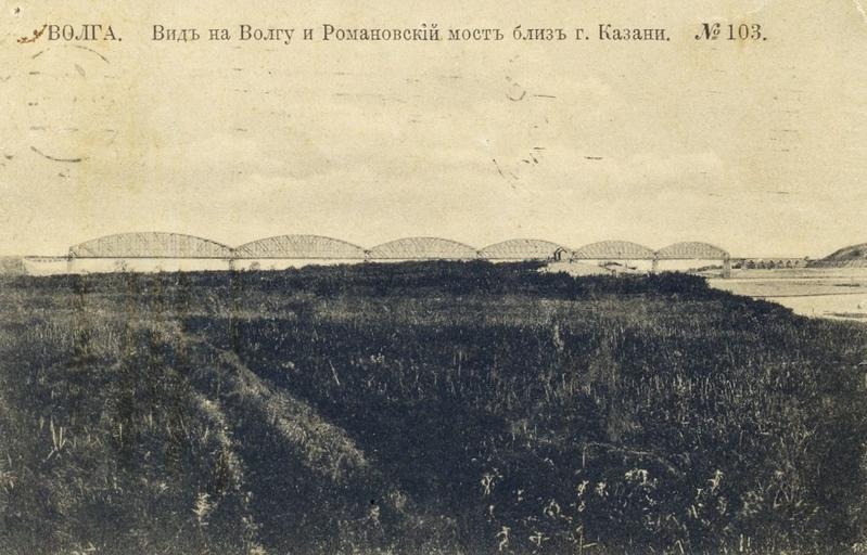 Keywords: Вид на Волгу и Романовский мост (1910-е гг.).jpg ru Вид на Волгу и Романовский мост адписи над изоб ажением на лицевой сто оне отк ытки «ВОЛГА Видъ на Волгу и Романовскiй мостъ близъ г Казани 103 » адписи на обо отной сто оне отк ытки «ПОЧТОВАЯ КАРТОЧКА письмо ад есъ» « 103 J M J K 1 7 13 » Почтовая отк ытка Авто неизвестен скани овано И Е Алексеевым 29 июля 2012 г 1910-е гг PD-RusEmpire PD-old Zelenodolsk Bridge