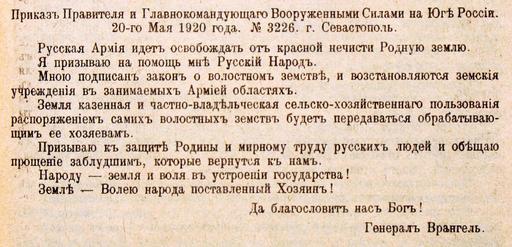 | Keywords: Приказ Врангеля о красной нечисти 1920.JPG ru Русская А мия идет освобождать от к асной нечисти Родную землю П иказ Главнокомандующаго Воо уженными Силами на Юге России П В ангеля 3226 от 20 мая 1920 года г Севастополь Выпущен пе ед выходом белой Русской А мии из К ыма высадкой десанта ген Слащова в Ки илловке 1920-05-20 А хив усской еволюции Гессена Бе лин т 5 1922 / own photo by Vizu Пёт иколаевич В ангель / Pyotr Nikolayevich Wrangel PD-old-70 PD-trivial <gallery>File Об ащение В ангеля о Хозяине 20 мая 1920 JPG</gallery> Civil war of Russia in Crimea Civil war of Russia 1920 1920 in Sevastopol Pyotr Nikolayevich Wrangel |