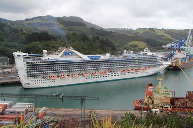 Keywords: ship vehicle outdoor Golden Princess birthed at Port Chalmers, New Zealand. Golden Princess is a Grand-class cruise ship with Princess Cruises that entered service in 2001. She is the sister ship of Grand Princess and Star Princess. She measures 109,000 gross tons and carries 2,600 passengers (double occupancy) plus 1,100 crew members. From 2009 to September 2015, she primarily operated on the Hawaii, and the West Coast of the United States. Golden was constructed in Italy by Fincantieri and is Bermudan flagged. Golden Princess was one of the first major cruise ships to sail to Antarctic waters in 2006. She was dry docked in Victoria from mid-April to early-May 2009, in order to refurbish the entire ship. She was also drydocked in 2012 and again in 2015, where major refurbishments and addition of several new amenities took place. en.wikipedia.org/wiki/Golden_Princess Golden Princess birthed at Port Chalmers, New Zealand. Golden Princess is a Grand-class cruise ship with Princess Cruises that entered service in 2001. She is the sister ship of Grand Princess and Star Princess. She measures 109,000 gross tons and carries 2,600 passengers (double occupancy) plus 1,100 crew members. From 2009 to September 2015, she primarily operated on the Hawaii, and the West Coast of the United States. Golden was constructed in Italy by Fincantieri and is Bermudan flagged. Golden Princess was one of the first major cruise ships to sail to Antarctic waters in 2006. She was dry docked in Victoria from mid-April to early-May 2009, in order to refurbish the entire ship. She was also drydocked in 2012 and again in 2015, where major refurbishments and addition of several new amenities took place. en.wikipedia.org/wiki/Golden_Princess |