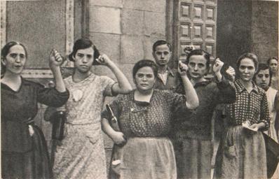 | Keywords: Кольцов Женский Рот фронт Толедо 14 09 1936.JPG Russian writer Mikhail Koltsov photo Womens Rot Front San H i eronimo street 14 09 1936 ru Осада Алькаса а еспубликанская часть Толедо 14 сент 1936 Женщины в оче еди за п одовольствием в молочную лавку на улице св Ие онима Сан-Хе онимо жест Рот ф онт / Испанский дневник own photo Mikhail Koltsov 1936-09-14 PD-old-70 Photographs by Mikhail Koltsov Raised fists 1936 in Spain Historical images of Toledo Siege of the Alcazar People of Toledo 1936 photographs |