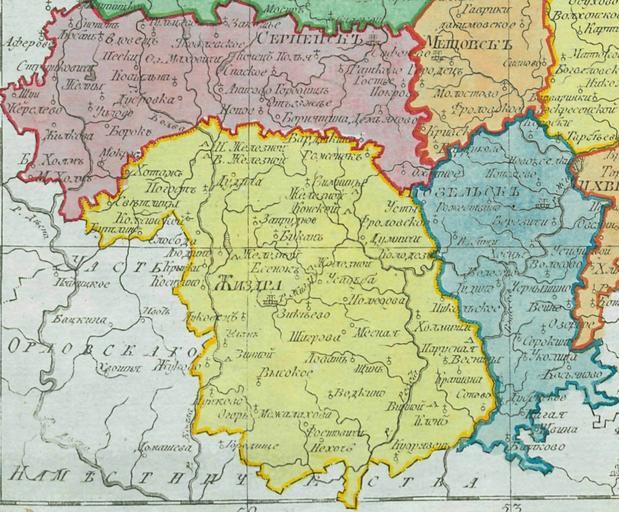 Keywords: Жиздринский уезд. Атлас Сытина 1792 г..jpg Ка та Жизд инского уезда 1792 г Атлас Сытина 1792 г 1792 author PD-old-100 Old maps