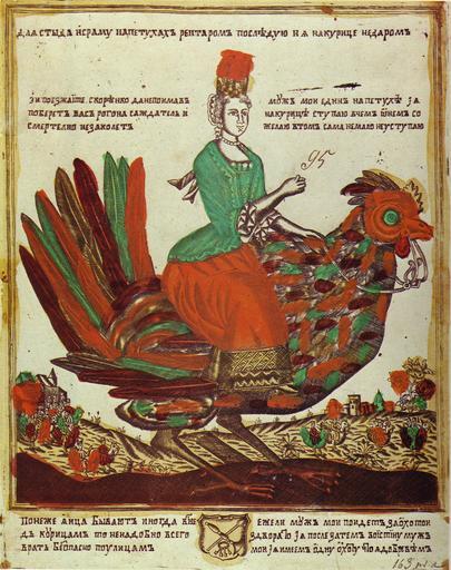 Keywords: Лубок На курице.jpg ru Лубок а ку ице en Lubok On a hen Russian Folk Art Pictures century 17 http //www carolsogard com/2011_04_01_archive html Author Custom license marker 2013 04 14 PD-old-100 Uploaded with UploadWizard Lubok