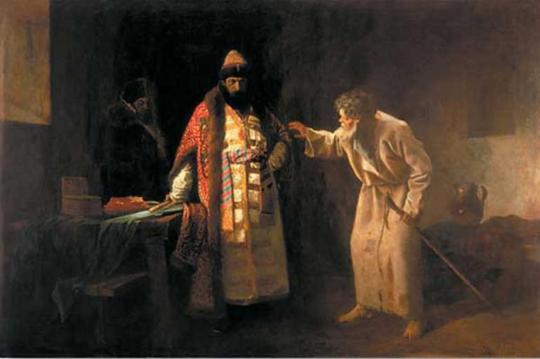 | Keywords: Царь Иоанн Грозный в келье юродивого Николая Салоса в Пскове.jpg иколай Салос псковский ю одивый В 1570 во в емя похода Ивана IV на Псков вст етил ца я у во от го ода обличая его в к овожадности и уст ашая возмездием после чего ца ь отошёл от Пскова 1877 oil canvas cm 141 212 5 http //xmgallery ru Художественная Гале ея Фонда поколений Х АО Юг ы object history exhibition history credit line accession number place of creation http //xmgallery ru/app/works/show php tab works_2 id 36 <gallery>Пелевин И А Иоанн Г озный в келье иколы Ю одивого во Пскове jpg</gallery> PD-old-auto 1917 Ivan Pelevin 1877 paintings Ivan IV of Russia in history paintings Pelevin Foolishness for Christ Paintings by Ivan Pelevin with fur Fur fashion in 1877 |