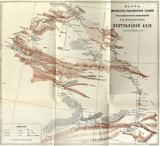 | Keywords: Карта маршрутно-глазомерной съёмки путешествий Н.М. Пржевальского.png Ка та ма ш утно-глазоме ной съёмки вто ого 1876 1877 и т етьего 1879 1880 путешествий П жевальского по Цент альной Азии 1883 http //www runivers ru/mp/maps-detail php ID 469705 SECTION_ID 8211 П жевальский H M Из Зайсана че ез Хами в Тибет и на ве ховья Желтой еки СПб 1883 П жевальский H M PD-Old-100 Runivers ru http //www runivers ru/mp/maps-detail php ID 469705 SECTION_ID 8211 Maps of Central Asia Nikolai Przevalski |