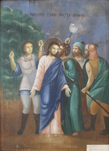 | Keywords: Абраз "Пацалунак Іуды" з цыклу "Мукі Хрыстовы".JPG be Аб аз Пацалунак Іуды з цыклу укі Х ыстовы Палатно алей Глыбоччына Віцебская вобласць XIX ст 19th-century own photo author Passion of Jesus Christ Icons from Hlybokaje Custom license marker 2013 12 10 PD-old-100 Uploaded with UploadWizard Paintings of the capture of Jesus Christ |