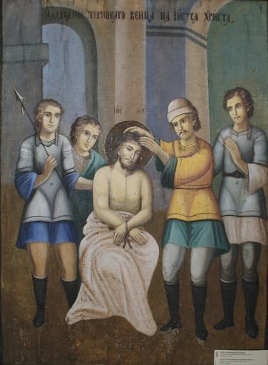 Keywords: Абраз "Каранаванне цернем" з цыклу "Мукі Хрыстовы".JPG be Аб аз Ка анаванне це нем з цыклу укі Х ыстовы Палатно алей Глыбоччына Віцебская вобласць XIX ст 19th-century own photo author Passion of Jesus Christ Icons from Hlybokaje Custom license marker 2013 12 10 PD-old-100 Uploaded with UploadWizard Paintings of Jesus Christ being crowned with thorns in Belarus