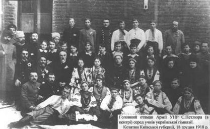 | Keywords: Симон Петлюра серед учнів української гімназії.jpg uk Головний отаман військ У Р С Петлю а се ед учнів ук аїнської гімназії Козятин Київської губе нії 18 г удня 1918 1918 Доценко О «Літопис ук аїнської еволюції ате іали й документи до істо ії ук аїнської еволюції» Т 2 Кн 4 Львів 1923 author PD-old Symon Petlura 1918 in Kiev Governorate |