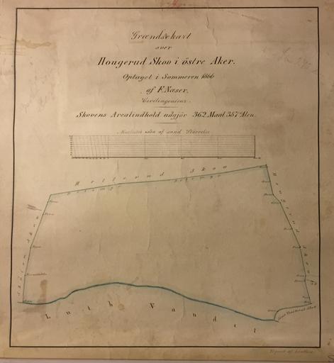 Keywords: kart eiendomskart østmarka oppmåling eiendomsgrenser teig teiger eiendom oppmålingskart text writing monochrome Grensekart for Haugerud gårds skog (Hougerud i østre Aker), 1866. Tegnet av Frederik Peter Leganger Næser som var gift med Thomas Heftyes søster Valborg. Kartet ble sannsynligvis tegnet i forbindelse med at Heftye/Sarabråten kjøpte skogen, noe de gjorde med de fleste mindre skogeiendommene nord for Nøklevann (rundt Lutvann). Vær obs på at kartet ikke er orientert med nord opp (se "nord-pil"). Originalen er hos Oslo byarkiv. Grensekart for Haugerud gårds skog (Hougerud i østre Aker), 1866. Tegnet av Frederik Peter Leganger Næser som var gift med Thomas Heftyes søster Valborg. Kartet ble sannsynligvis tegnet i forbindelse med at Heftye/Sarabråten kjøpte skogen, noe de gjorde med de fleste mindre skogeiendommene nord for Nøklevann (rundt Lutvann). Vær obs på at kartet ikke er orientert med nord opp (se "nord-pil"). Originalen er hos Oslo byarkiv. |