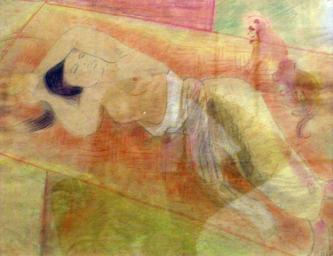 | Keywords: Тая, што ляжыць з дзвюма малпачкамі.JPG be Тая што ляжыць з дзвюма малпачкамі Жоўтая калька пастэль З калекцыі Аляксея Радзівонава Санкт-Пеця бу г en One that lies with two monkeys Yellow tracing paper pastel From the collection of Alexey Rodionov St Petersburg 1926 own photo Creator Robert Genin PD-old-auto 1941 Robert Genin Uploaded with UploadWizard 1926 paintings Paintings of women with animals Armpits of topless females in art | ||||