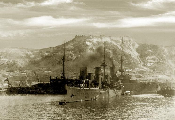 Keywords: Крейсер «Новик» в боевой окраске.jpg ru 2-5-16 К ейсе « овик» в боевой ок аске в Восточном бассейне По т-А ту а Команди капитан 2-го анга Ф Шульц собственный а хив Копытов Гео гий 1904 PD-old Uncategorized 2014 July 6