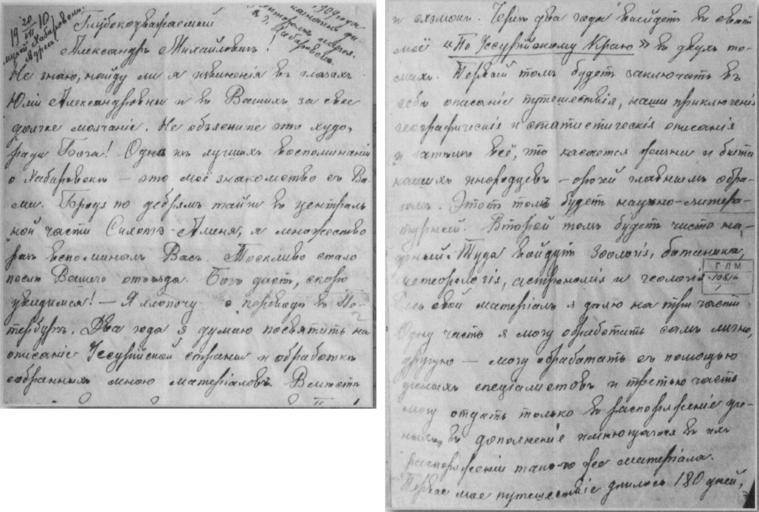 | Keywords: Автограф письма В.К. Арсеньева А.М. Иванову от 02.VIII.1910 г. (20.VII.2010 г. по старому стилю) о двухтомнике По Уссурийскому краю.png ru Автог аф письма Владими а Клавдиевича А сеньева А Иванову от 02 VIII 1910 г 20 VII 2010 г по ста ому стилю в кото ом В К А сеньев ассказывает о своих тво ческих аботах и называет п едполагаемый с ок выхода двухтомника «По Уссу ийскому к аю» 1912 год 1910-08-02 Владими Клавдиевич А сеньев Соб ание сочинений в 6 томах Том I / Под ед ОИАК Владивосток Альманах «Рубеж» 2007 704 с Владими Клавдиевич А сеньев other versions File Письмо В К А сеньева А Иванову от 02 VIII 1910 г 20 VII 2010 г по ста ому стилю о двухтомнике По Уссу ийскому к аю ф агмент 1 jpg JPEG 646 КБ File Письмо В К А сеньева А Иванову от 02 VIII 1910 г 20 VII 2010 г по ста ому стилю о двухтомнике По Уссу ийскому к аю ф агмент 2 jpg JPEG 819 КБ Custom license marker 2015 02 17 PD-old-80 Uploaded with UploadWizard Literary works by Vladimir Arsenyev |