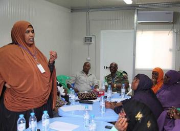 | Keywords: people indoor AMISOM Gender Unit headed by AMISOM Women and Child Protection Officer Kaoutar Kaddouri and AMISOM Human Rights and Gender unit officer Rasha Elamin visited Baidoa today. The team met with Human Rights groups, women group representatives, AMISOM CIMIC officer, representatives from the local administration and discussed with them the needs and priorities of women and child protection, human rights issues, protection of the unprivileged members of the society, protection from rape and reportage of rape cases among others. AMISOM Photo AMISOM Gender Unit headed by AMISOM Women and Child Protection Officer Kaoutar Kaddouri and AMISOM Human Rights and Gender unit officer Rasha Elamin visited Baidoa today. The team met with Human Rights groups, women group representatives, AMISOM CIMIC officer, representatives from the local administration and discussed with them the needs and priorities of women and child protection, human rights issues, protection of the unprivileged members of the society, protection from rape and reportage of rape cases among others. AMISOM Photo |