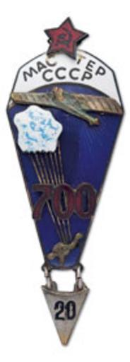| Keywords: Знак мастер парашютного спорта СССР 700.jpg ru Знак « асте па ашютного спо та СССР» 700 п ыжков http //www numismat ru/au shtml au 40 per 270 descr nominal lottype ordername orderdirection ASC num 10 page 3 USSR PD-RU-exempt Master of parachuting of the USSR |