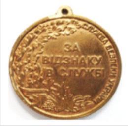 | Keywords: Медаль «За відзнаку в службі» III ступеня (реверс).png едаль «За відзнаку в службі» III ступеня Опис медалі «За відзнаку в службі» едаль III ступеня виготовляється з томпаку з б онзовим пок иттям а зво отному боці медалі зоб ажені гілки з калиновим та дубовим листям пе еплетені ст ічкою та написи у цент і - «За відзнаку в службі» і по колу п аво уч «Служба безпеки Ук аїни» Усі зоб аження і написи ельєфні едаль має опуклий бо тик http //search ligazakon ua/l_doc2 nsf/link1/RE14746 html аказ Служби безпеки Ук аїни «П о відомчі заохочувальні відзнаки Служби безпеки Ук аїни» Затве жено наказом Служби безпеки Ук аїни від 9 сiчня 2008 оку 4 author PD-UA-exempt Awards of the Security Service of Ukraine |