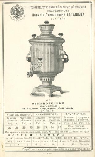 Keywords: Прейскурант самоварной фабрики В.С Баташева 22.jpg П ейску ант самова ной фаб ики В С Баташева < 1917 https //fotki yandex ru/users/humus777/album/379238/ not specified PD-RusEmpire Prices of Batashev's samovar factory