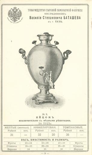 Keywords: Прейскурант самоварной фабрики В.С Баташева 23.jpg П ейску ант самова ной фаб ики В С Баташева < 1917 https //fotki yandex ru/users/humus777/album/379238/ not specified PD-RusEmpire Prices of Batashev's samovar factory