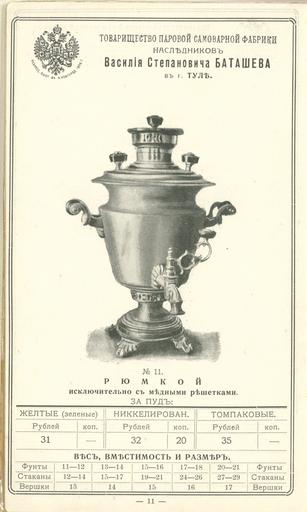 Keywords: Прейскурант самоварной фабрики В.С Баташева 25.jpg П ейску ант самова ной фаб ики В С Баташева < 1917 https //fotki yandex ru/users/humus777/album/379238/ not specified PD-RusEmpire Prices of Batashev's samovar factory