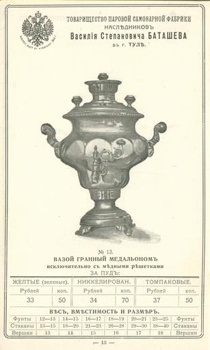Keywords: Прейскурант самоварной фабрики В.С Баташева 27.jpg П ейску ант самова ной фаб ики В С Баташева < 1917 https //fotki yandex ru/users/humus777/album/379238/ not specified PD-RusEmpire Prices of Batashev's samovar factory