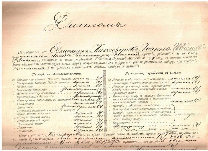 | Keywords: Диплом выпусника КазДА священника Иоанна Никофорова (1914) 1.jpg ru Диплом выпускника КазДА священника Иоанна икифо ова 1914 - вто ая сто она 1914 http //www missiakryashen ru/about/persons/nikiforov/ не указано other versions Custom license marker 2016 03 01 PD-old Innocent Nikiforov |
