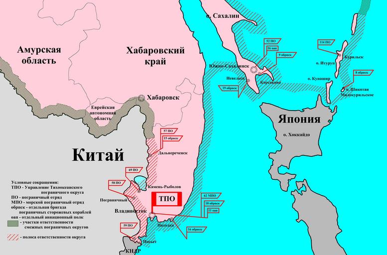 Keywords: ТПО.jpg map ru Тихоокеанский пог аничный ок уг КГБ СССР на 1991 год Расположение от ядов Данные взяты из этого источника - http //shieldandsword mozohin ru/kgb5491/troops/border_guard htm 2016-04-28 own Kalabaha1969 other versions cc-zero Soviet Border Troops 1954-1991 Maps in Russian |