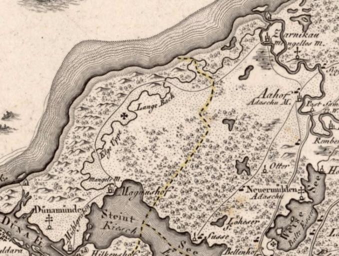 | Keywords: Река Ланга на карте конца XVIII века.png Ф агмент ка ты из «Атласа Ливонии или двух г афств Ливония и Эстония и п овинции Озель» скан ка ты конец XVIII века Людвиг Август еллин 1754-1835 гг PD-old-100 Old maps of Livonia Langa River 18th-century maps of Latvia |