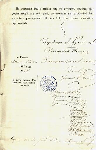 Keywords: Аттестат зрелости А.П.Каютова II.jpg ru Аттестат з елости А Каютова полученный им по окончании 8-летнего обучения в Рязанской классической гимназии в 1886 г 1886-05-31 ЦГА осквы ф 418 оп 300 е х 338 О п инятии в число студентов Каютова Анд ея осковский Импе ато ский Униве ситет - other versions PD-old-70-1923 Andrey Kajutov Uncategorized 2016 December 29