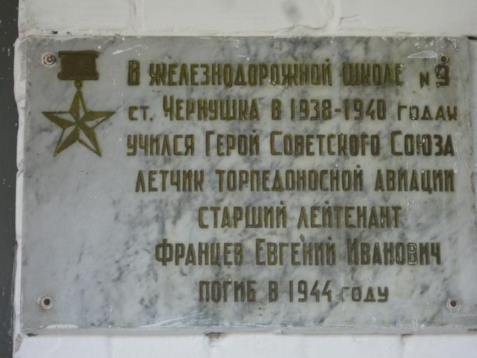 Keywords: Францев Евгений Иванович (мемориальная доска на школе).jpg ru емо иальная доска на школе 9 Кадетская школа где учился Ф анцев Е И own AndreyIGOSHEV 2010-07-10 Chernushka