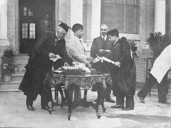 Keywords: الدكتور سلمان فائق في بغداد عام 1933.jpg ar سلمان فائق يتسلم شهادته من الكلية الطبية الملكية في بغداد وامامه الطبيب هاري سندرسن وهو يلتقط شيئا من المنضدة ، وبجانبه وزير الصحة حنا الخياط، والذي يمد يده لمصافحته هو رئيس الوزراء العراقي جميل المدفعي، في الدورة الثانية لتخرج الكلية الطبية في عام 1933 1933 http //alshakir blogspot com/2007/06/blog-post_2210 html Usamasaad other versions cc-by-sa-4 0 PD-Iraq Baghdad in the 1930s Men of Iraq Iraq People of Baghdad |