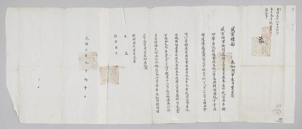 Keywords: 조선-청 외교문서(자문) 094.jpg 고종 16년 1879 9월 10 에 청국 예 에 조선국왕에게 보내 온 문 성경 盛京 동 외 邊外 매년 계절 따져 尉 협 協 원 파송하고 여름과 에는 조선국 방 과 압 강 두도구구 頭道 口 에 있 며 전 장정章程 1847년 헌종 13 에 압 강 역 불법 간 방 하기 해 정 선후장정 善後章程 말함 5월 1 과 8월 20 에 함께 회초하고 겨울에는 9월 24 터 12월까 다 회초 다고 알리는 내용 다 2016-07-18 http //www nl go kr/nl/search/SearchDetail nl category_code ct service KOLIS vdkvgwkey 1130091 colltype DAN_OLD place_code_info 172 place_name_info EB 94 94 EC A7 80 ED 84 B8 EC 97 B4 EB 9E 8C EC 8B A4 manage_code MA shape_code B refLoc null category srchFlag Y h_kwd E5 8F A4 E6 9C 9D51- EB 8B A428-132 lic_yn N mat_code RB 국립중앙도 조선국왕 청국예 other versions PD-Art Books from National Library of Korea Books from Korea 1879 in Relations of the Joseon Dynasty and the Qing Dynasty |