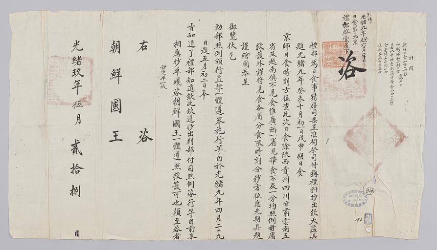 Keywords: 조선-청 외교문서(자문) 124.jpg 고종 20년 1883 5월 28 에 청국 예 에 조선국왕에게 보내 온 문 올해 10월 1 에 있다고 알리는 내용 다 2016-07-18 http //www nl go kr/nl/search/SearchDetail nl category_code ct service KOLIS vdkvgwkey 1130189 colltype DAN_OLD place_code_info 172 place_name_info EB 94 94 EC A7 80 ED 84 B8 EC 97 B4 EB 9E 8C EC 8B A4 manage_code MA shape_code B refLoc null category srchFlag Y h_kwd E5 8F A4 E6 9C 9D51- EB 8B A428-182 lic_yn N mat_code RB 국립중앙도 조선국왕 청국예 other versions PD-Art Books from National Library of Korea Books from Korea 1883 in Relations of the Joseon Dynasty and the Qing Dynasty |