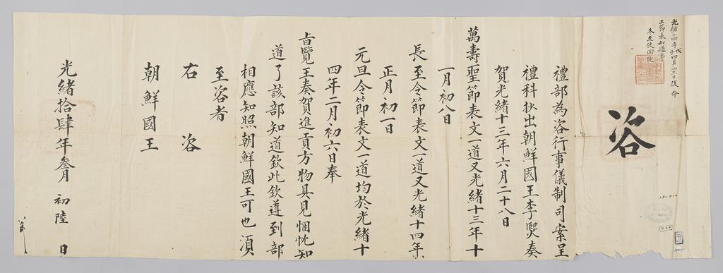 Keywords: 조선-청 외교문서(자문) 144.jpg 고종 25년 1888 3월 6 에 청국 예 에 조선국왕에게 보내 온 문 황 께 삼절 三 表 만수성절 장 령절 원단령절 3도 道 를 아뢰었더니 알았다고 전하는 내용 다 2016-07-18 http //www nl go kr/nl/search/SearchDetail nl category_code ct service KOLIS vdkvgwkey 1129996 colltype DAN_OLD place_code_info 172 place_name_info EB 94 94 EC A7 80 ED 84 B8 EC 97 B4 EB 9E 8C EC 8B A4 manage_code MA shape_code B refLoc null category srchFlag Y h_kwd E5 8F A4 E6 9C 9D51- EB 8B A428-210 lic_yn N mat_code RB 국립중앙도 조선국왕 청국예 other versions PD-Art Books from National Library of Korea Books from Korea 1888 in Relations of the Joseon Dynasty and the Qing Dynasty |
